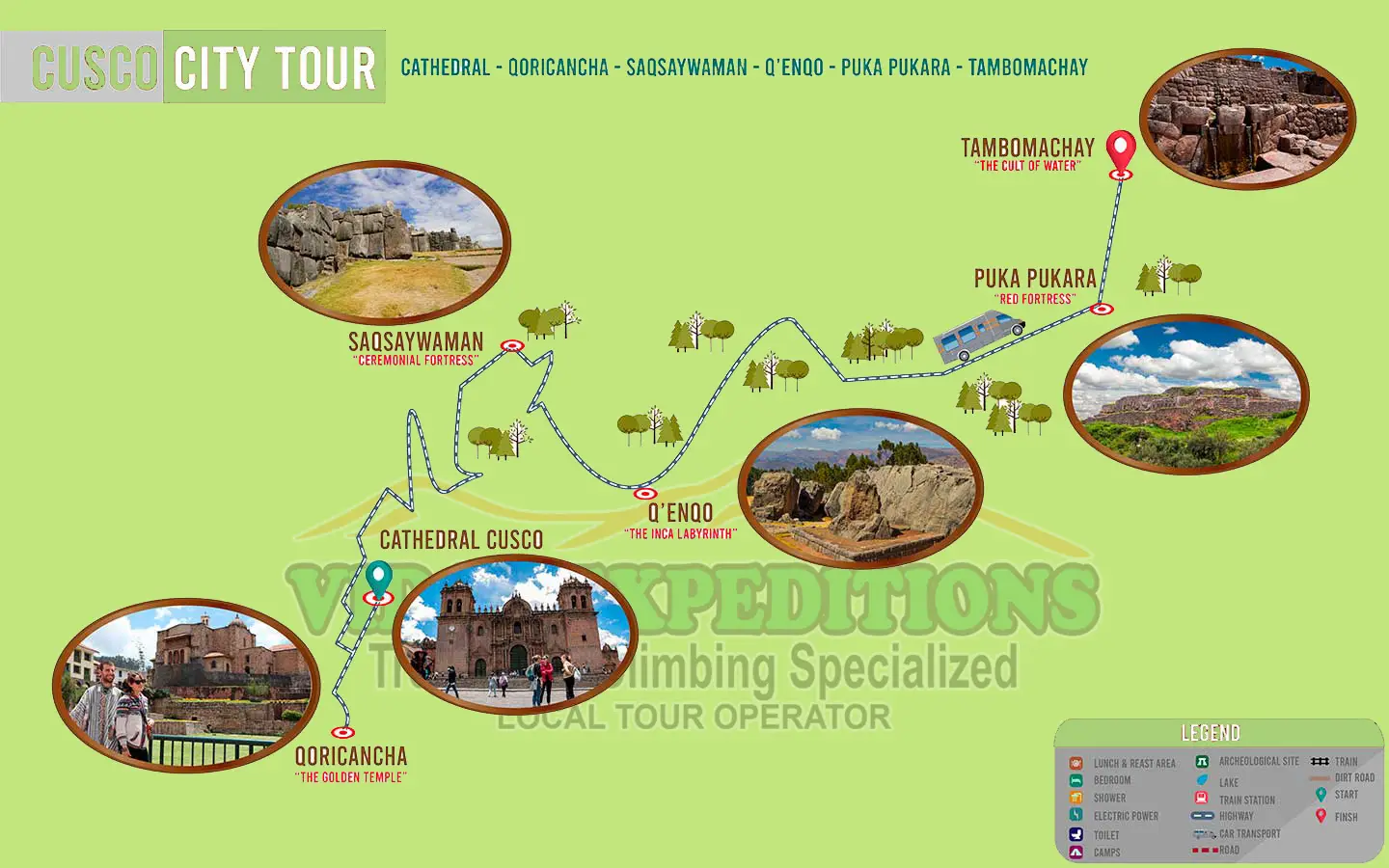 During this City Tour you will visit Qorichancha Inca Temple, Sacsayhuaman fortress, Qenqo Inca complex, Pucapucara Inca site and Tambomachay.
